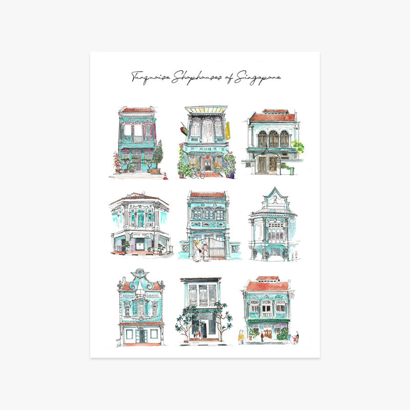 Bringing the best of our 9 turquoise shophouses in a collage. Best seller! Frame it at home to grace a special corner of the house, perfect for a welcome and leaving gift.