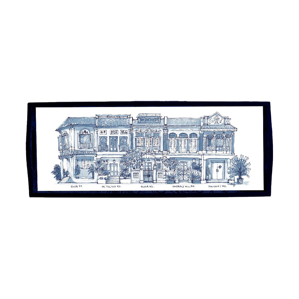 Dark Blue Oblong Lacquer Tray - Heritage Shophouses