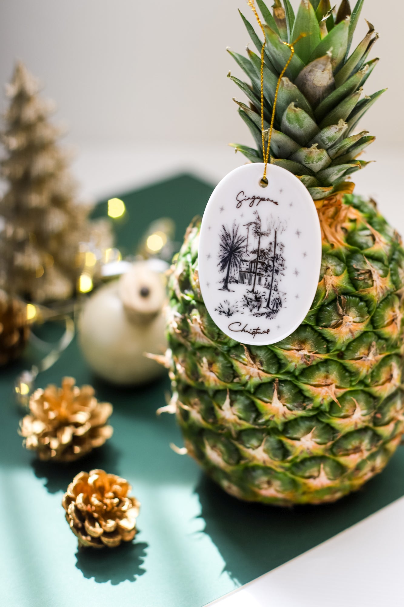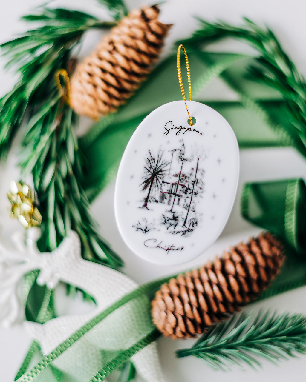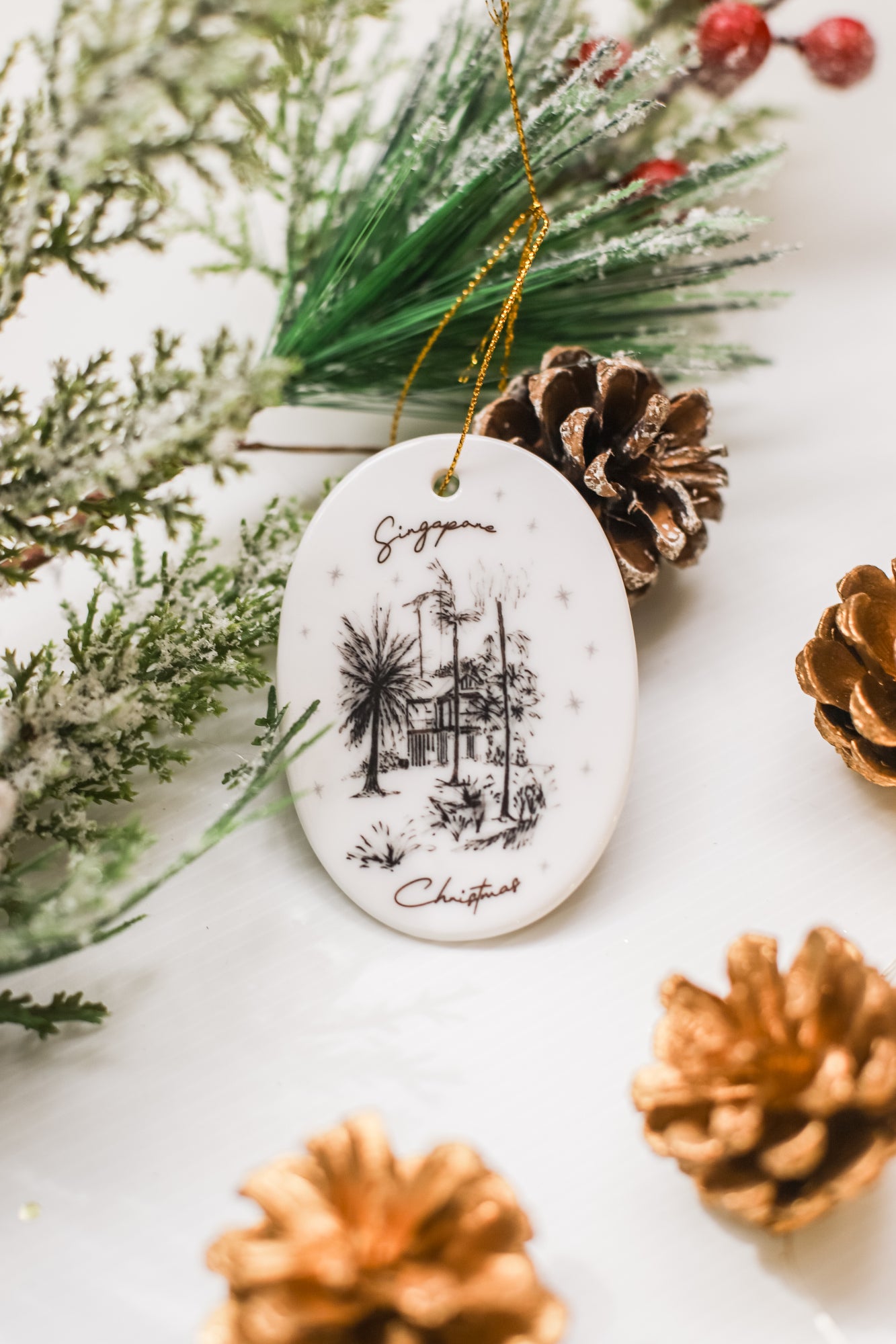 Beautiful ceramic Christmas tree decorations 3 inches by 3 inches from Gingerlily - featuring an illustration of Corner House, Singapore Botanical Gardens by Simon Privett