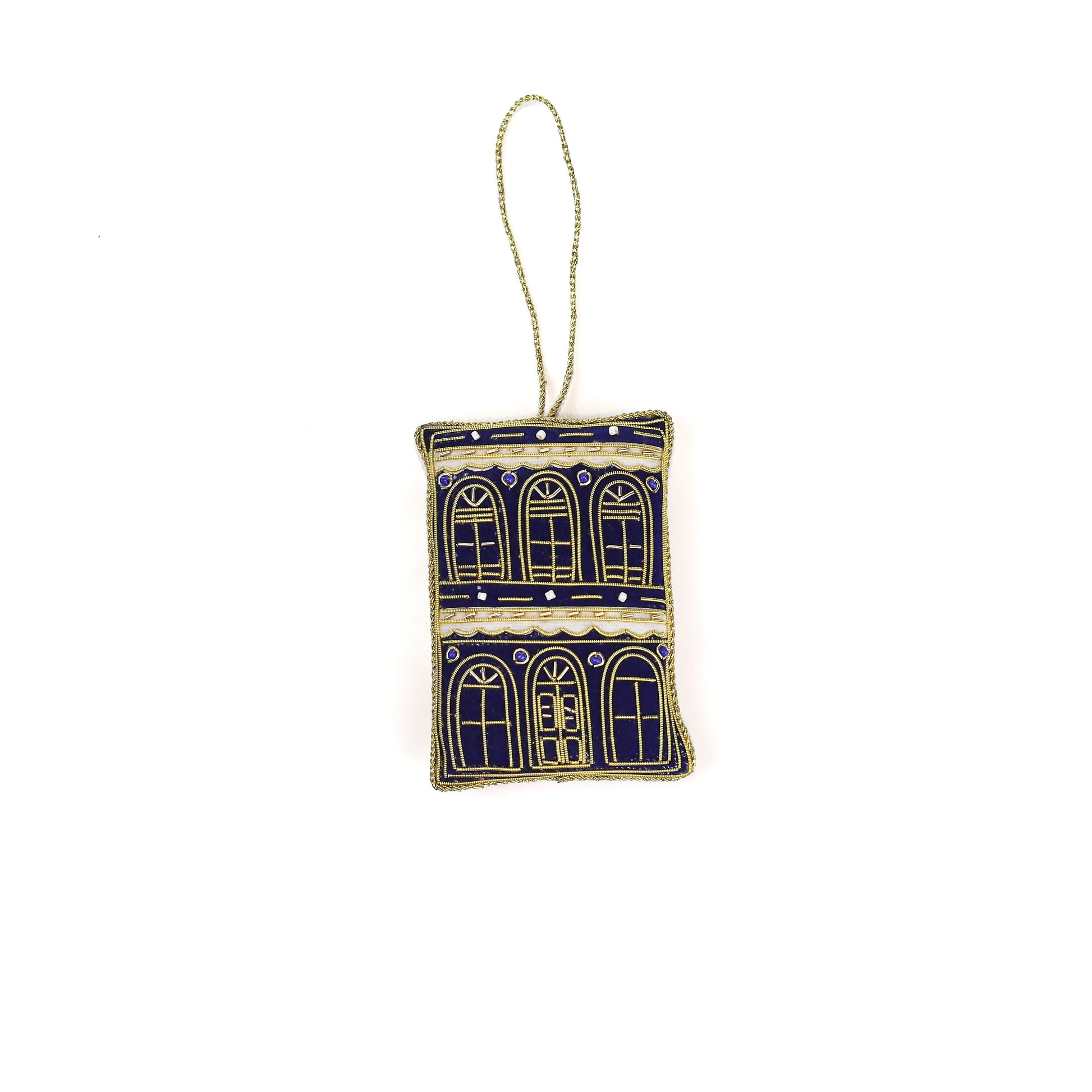 Beautiful embroidered Christmas tree decoration from Gingerlily - featuring a shophouse - A distinct type of terraced building, typically two to three stories high, that were historically used for both residential and commercial purposes. Suitable for gifting.