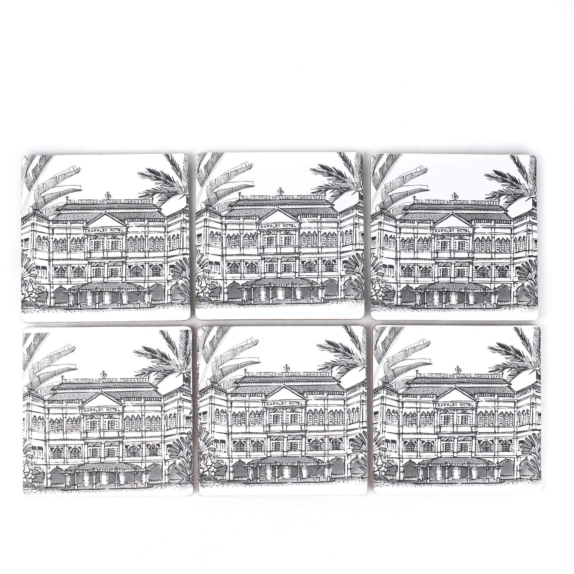Cork Backing B&W Raffles Hotel Coasters | Set of 6
