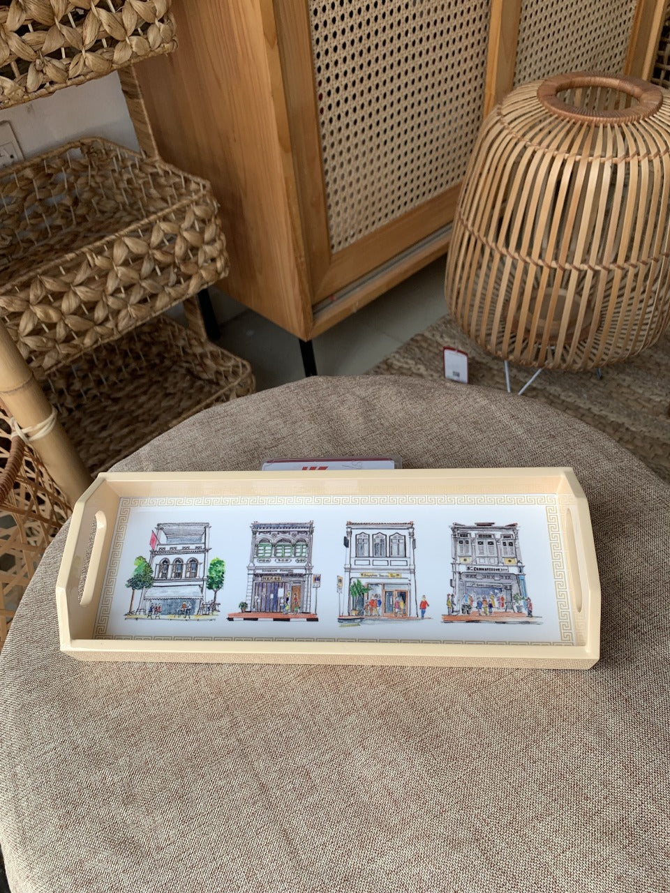 This grey oblong lacquer tray manufactured from Vietnam is a show stopping piece for your home, featuring pastel shophouses in Singapore and it is made to last. It will make a fabulous timeless gift - be it a welcome, leaving or a special occasion gift.