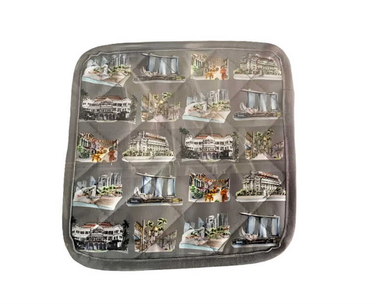 Featuring iconic sights of Singapore. It can be a beautiful addition to kitchen or a practical gift. Add on our matching aprons & oven mittens to complete the set.