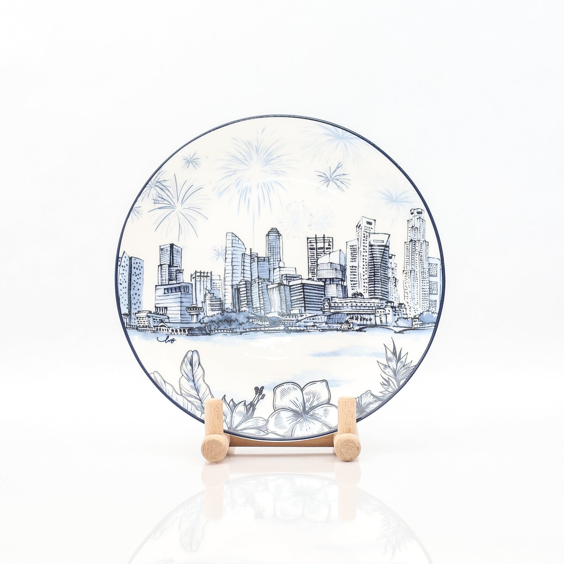 8 inch bone China plate with blue and white of Singapore Skyline