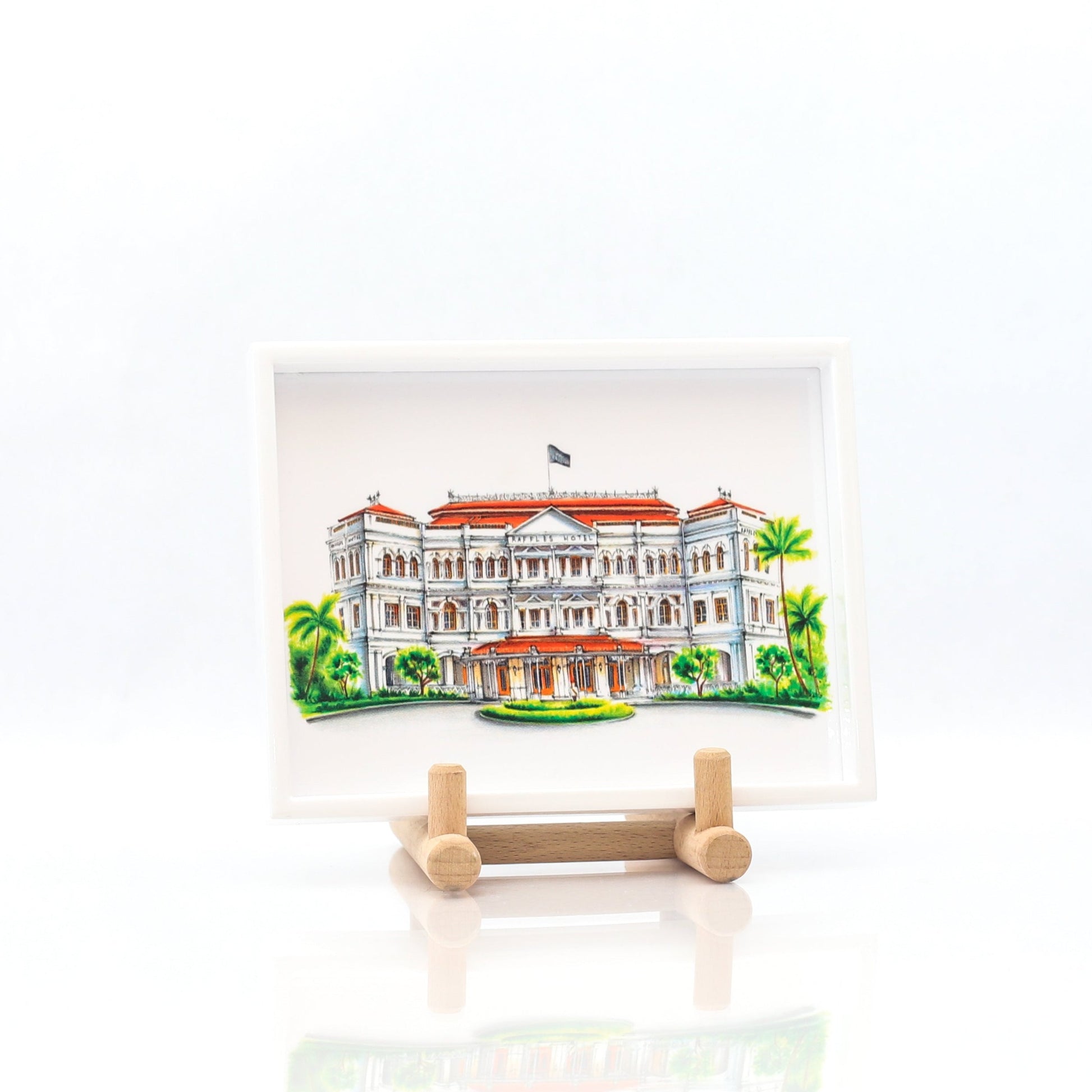 This white lacquer trinket tray is manufactured from Vietnam. It will make a fabulous timeless gift or for personal usage - handy at the entrance of the house to leave your keys and nick nacks. The illustrations on the is that of Raffles Hotel from our collection. The detailing of our hand drawn shophouses are beautifully captured here.