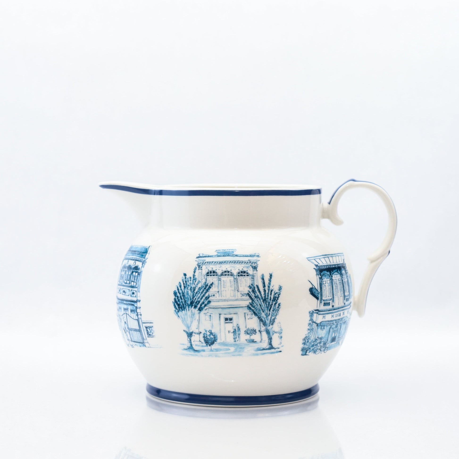 Our ceramic water jug will bring elegance and refinement to your table. I love our hand illustrated shophouses and we have picked our best 3 for this jug.